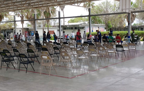 La vacunación empieza en cinco municipios. CBETIS 135 de la colonia Abelardo de la Torre allá por la Avenid del Niño. - Cerca de 10 mil personas ya recibieron la vacuna contra el Covid-19 durante los primeros dos días de la aplicación de la segunda dosis de Sinovac a las personas de 40.
